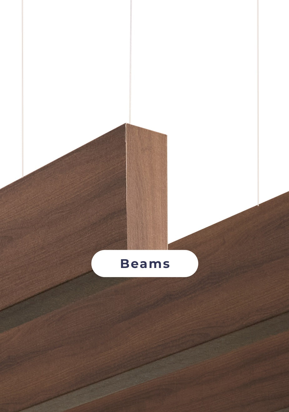 Our Beams help reduce noise and echo while fitting seamlessly into your space. They come in 2 different sizes and 47 colors, so you can customize them to your needs.