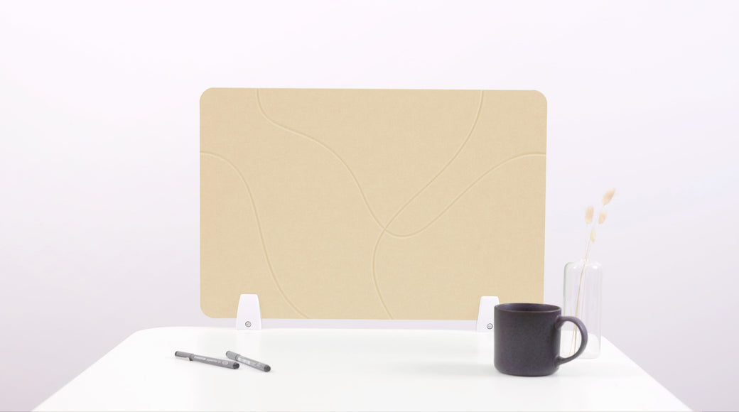 Each desk divider is made from at least 50% recycled single use plastic. One square foot of material uses four recycled water bottles. Our production process focuses on reducing waste and remaining sustainable.