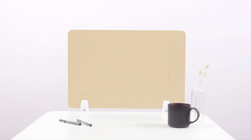 Felt Right desk dividers come with one of three hardware options to best match your space: 3/4" clamp, 2" clamp, or free standing. Simply desk clamp the hardware to the edge of your desk or place the free standing hardware on your desktop and slide your desk divider into the felt clamp.
